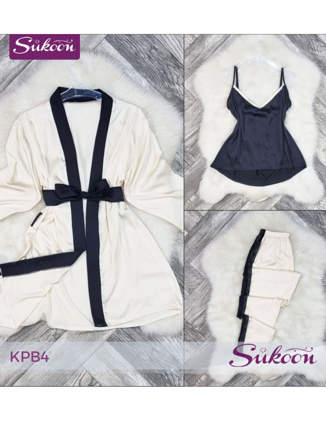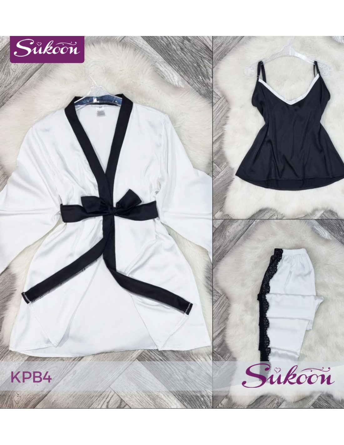 لأنكِ تستحقين الراحة بإطلالة أنيقة، نقدّم لكِ بيجاما من 3 قطع مصنوعة من الساتان الناعم، تضيف لمسة فاخرة على روتينكِ اليومي.