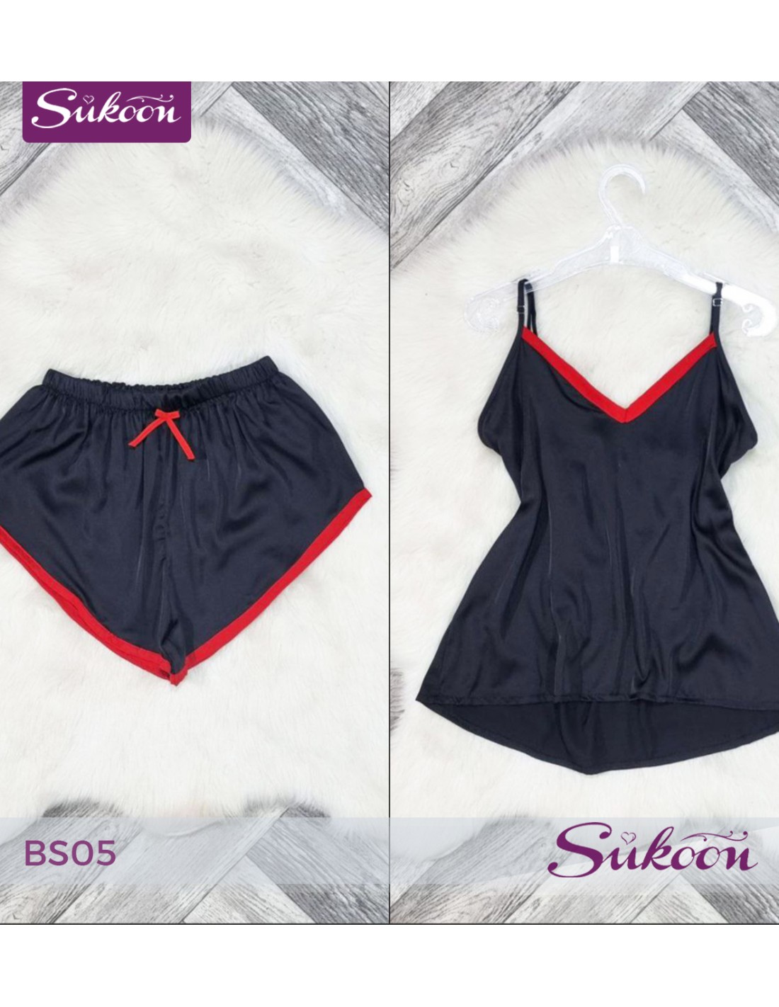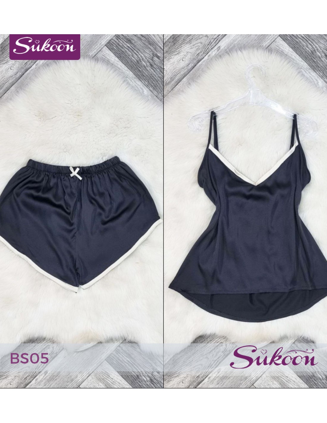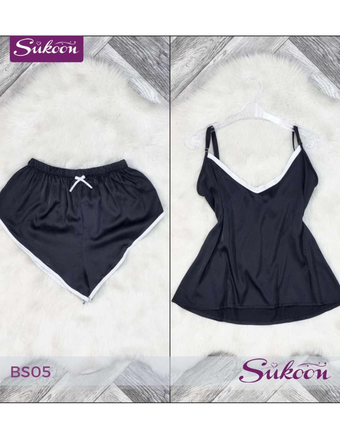 دلّلي نفسكِ بإطلالة أنثوية ناعمة مع بيجاما من قطعتين تجمع بين الأناقة والراحة، مكوّنة من بوستييه أنيق وشورت مريح، مثالية لفصل الصيف وللحظاتكِ الخاصة.