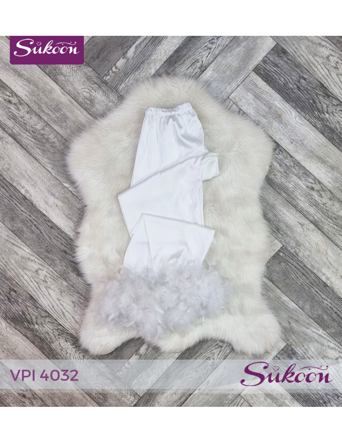 بيجاما من 3 قطع مزينة بالريش... أنوثة ناعمة بتفاصيل فاخرة