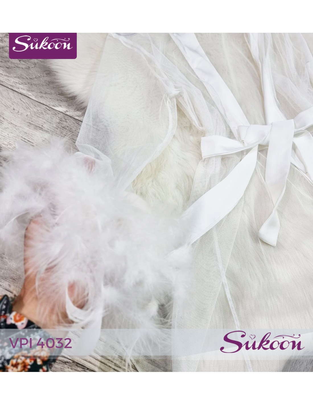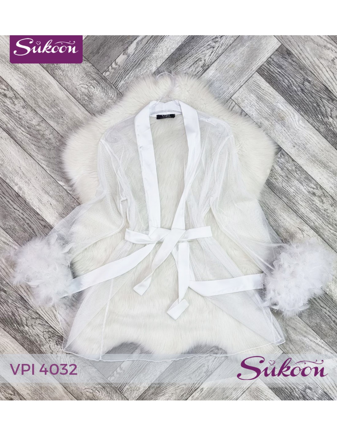 ▫️ روب طويل شفاف بأكمام مزينة بالريش الناعم
