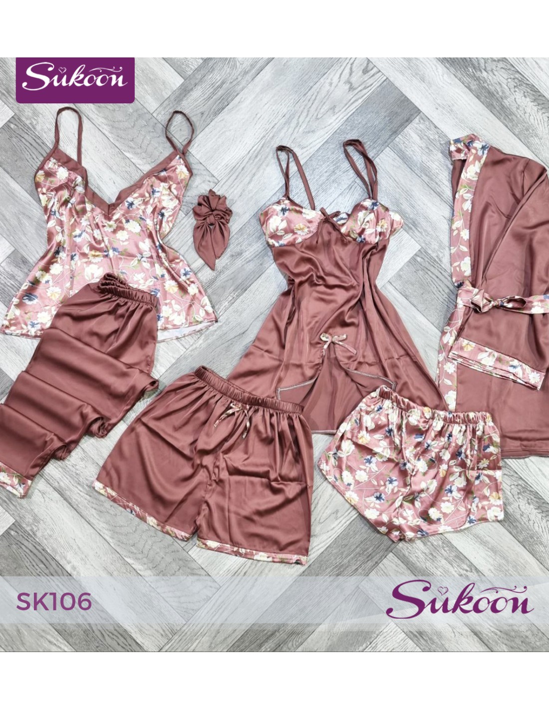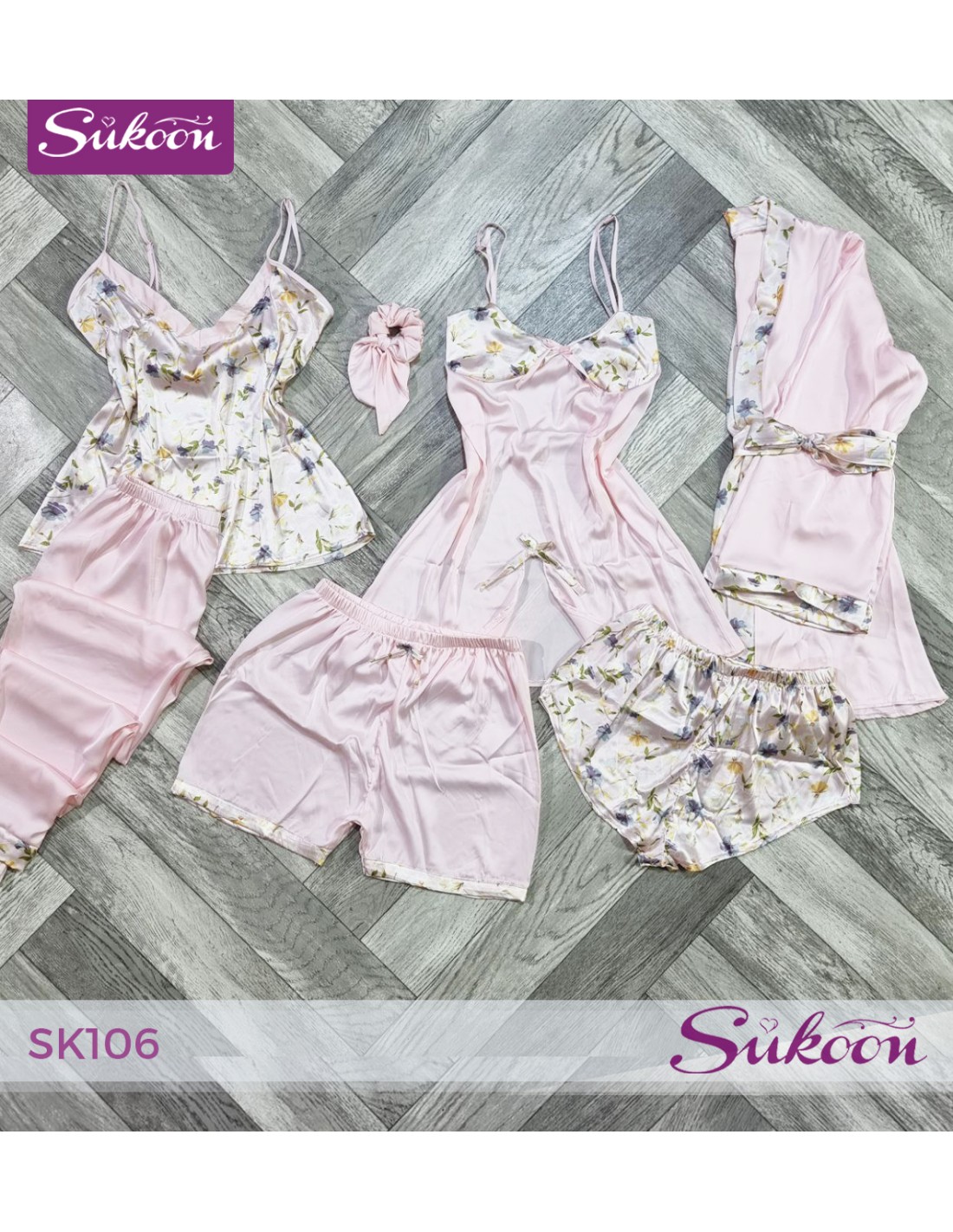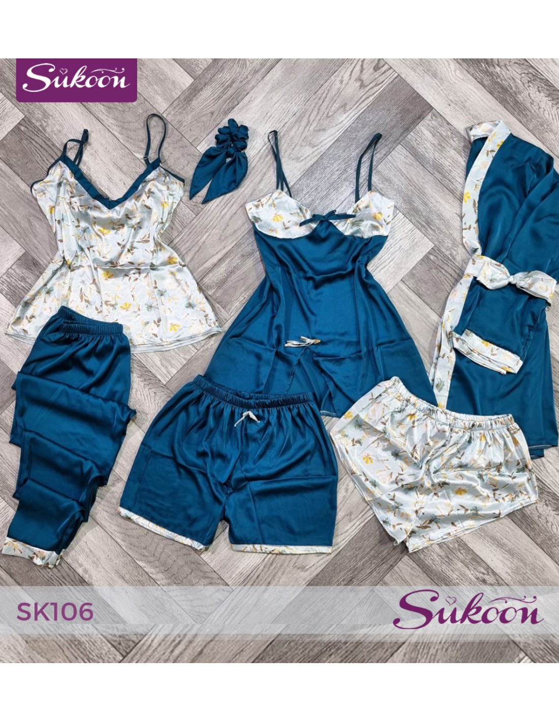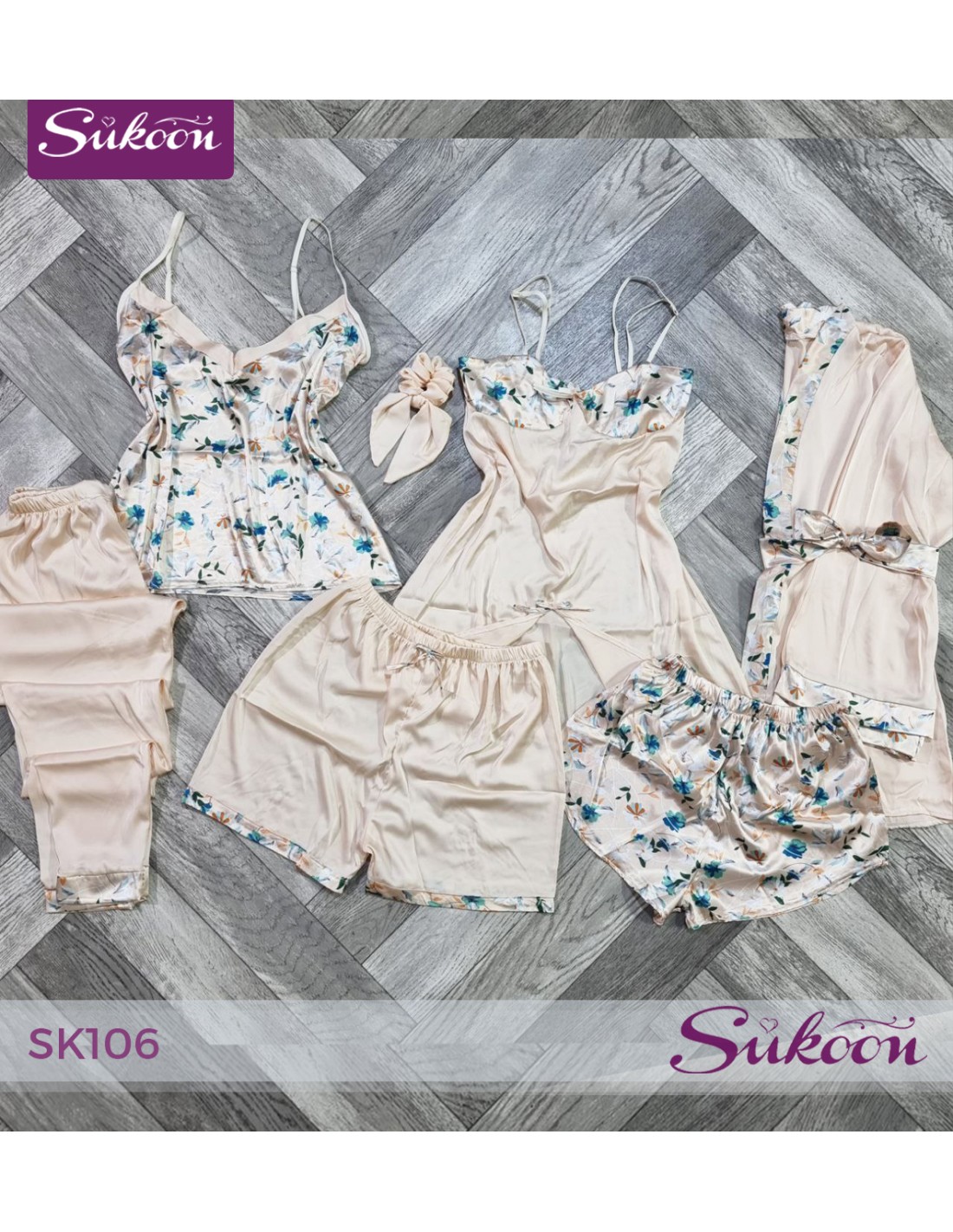بيجاما من 6 قطع تجمع بين الراحة والجاذبية، تخلي كل لحظة استرخاء عندك أكثر أنوثة وأناقة.